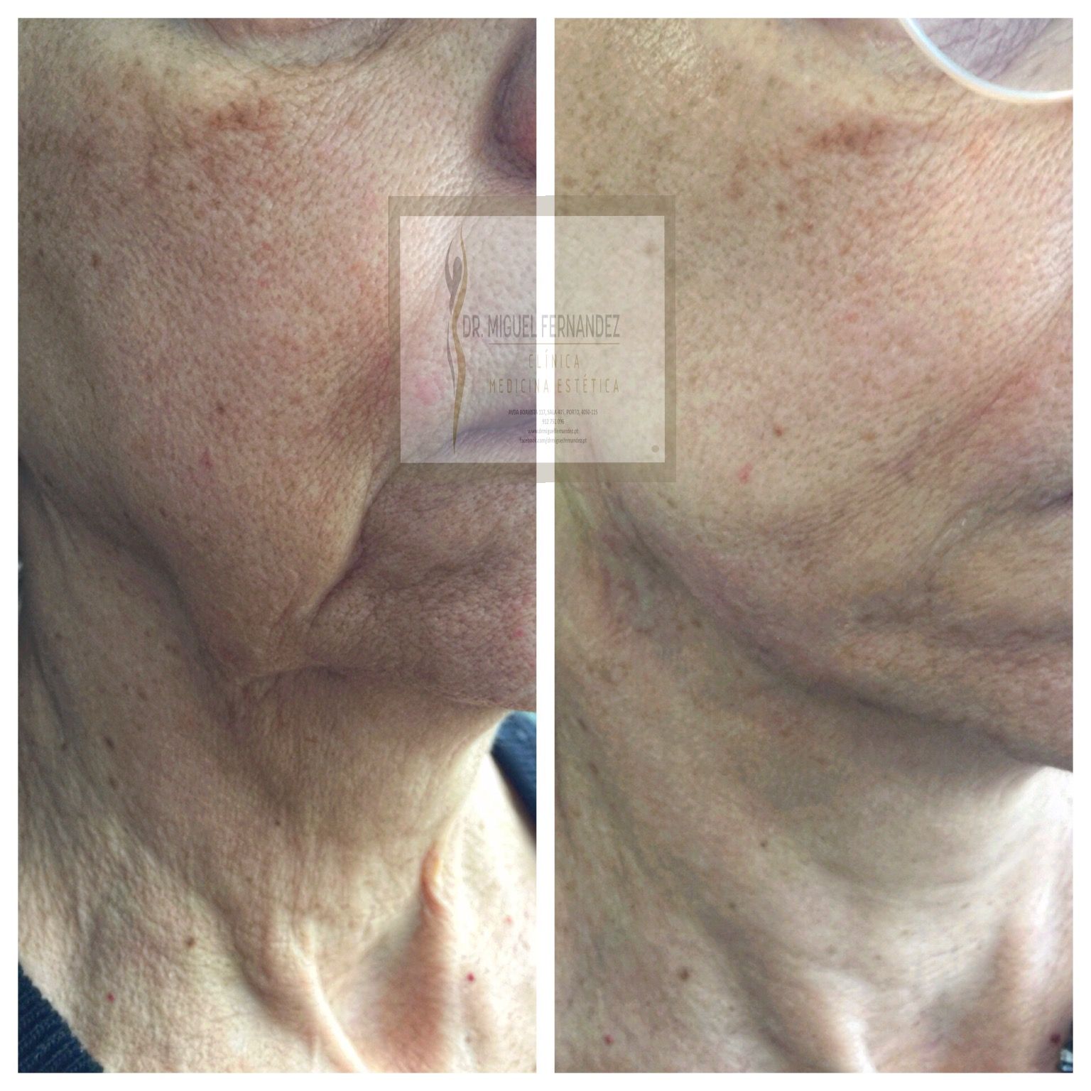 Este tratamento causa a sublimação das camadas mais superficiais da pele, causando uma “queimadura” e retração da pele tratada. Dessa forma, diminui rugas, flacidez e pode ser utilizado até mesmo no tratamento e retirada de pequenas lesões como xantelasma e siringomas.